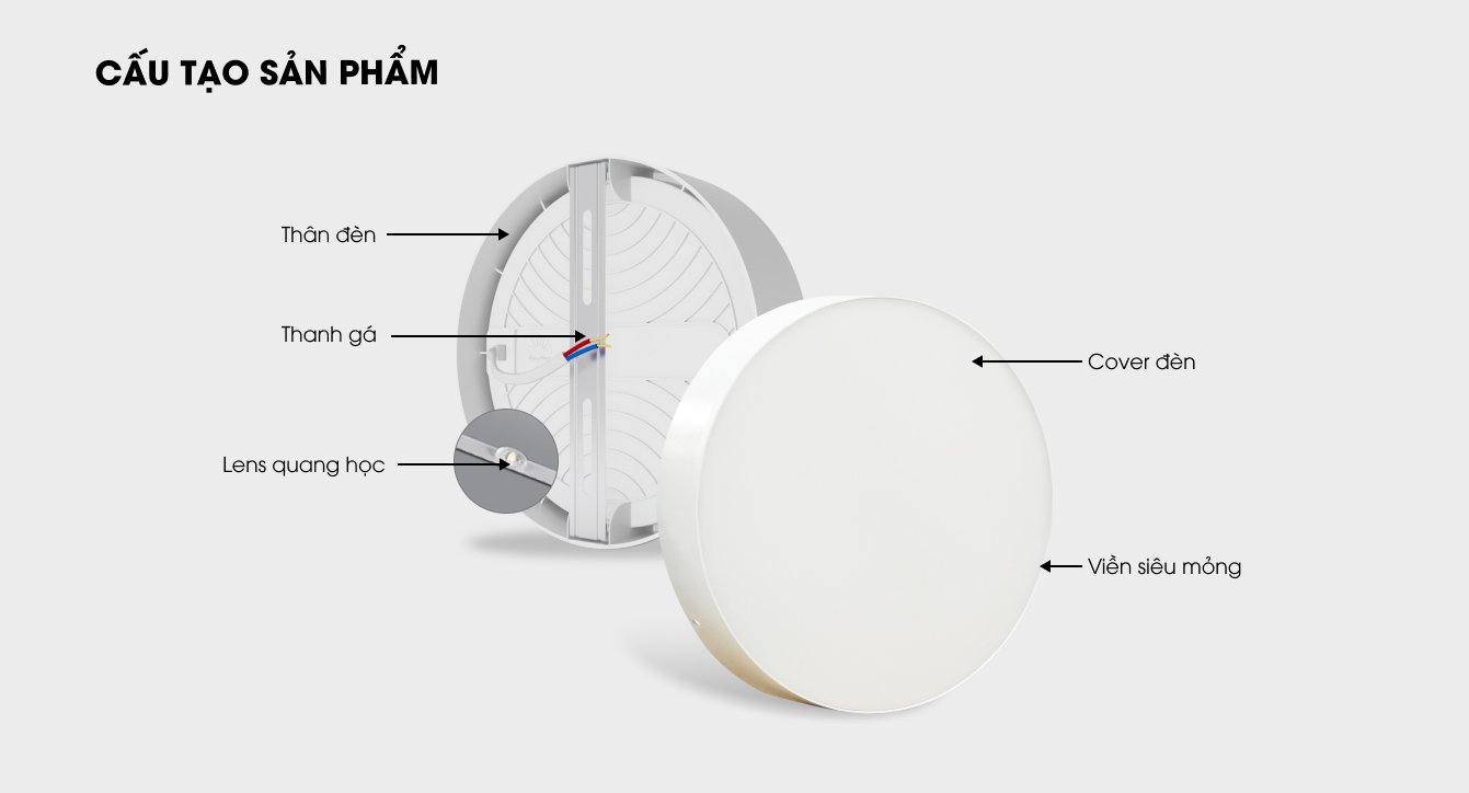 Đèn led ốp trần Rạng Đông với kiểu dáng hình tròn cùng viền đèn được làm từ chất liệu nhựa cao cấp, bề mặt đèn được thiết kế trơn mịn, tạo sự sang trọng và dễ dàng vệ sinh.